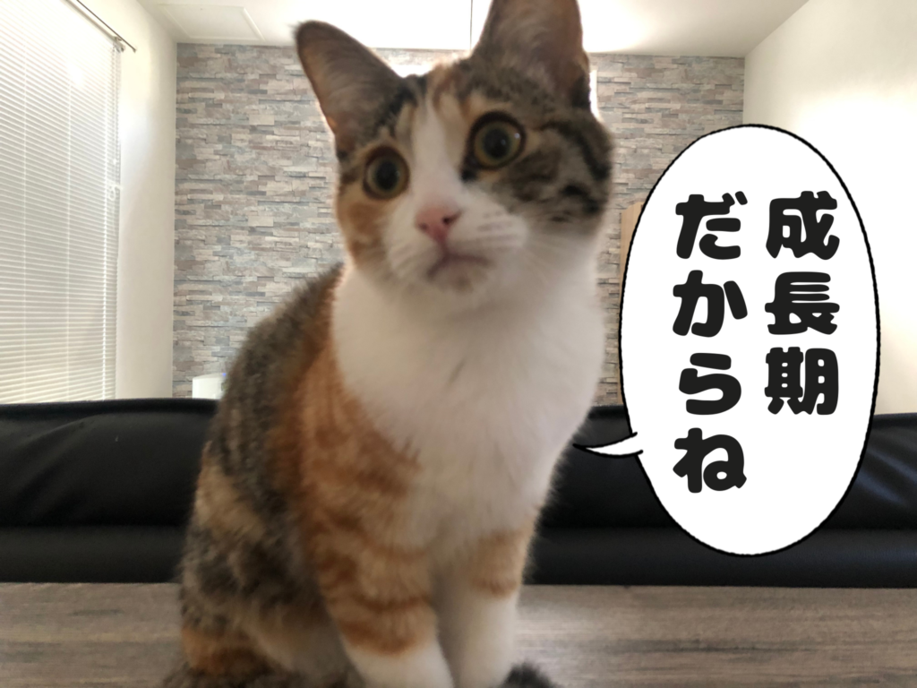 手術を受けるにあたって、他の子たちのフードを奪って食べるくらいには食い意地はっている食欲旺盛のわりに体が小さいから、欲を言えばもう少し大きくなってほしいところ。